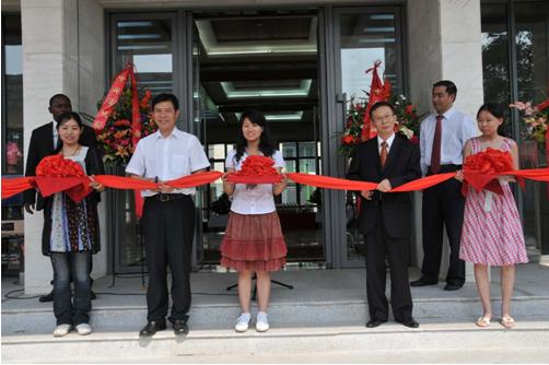 ■鐘山副部長(左二)、吳澤獻大使(右二)為新館剪彩
