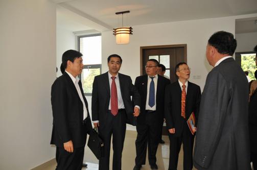 儀式結束后,鐘山副部長親切接見了江蘇省建集團副總裁兼海外公司總經理張三旗,聽取了項目組關于項目施工情況的匯報。隨后,鐘山在吳澤獻、魏勝梓、張三旗和項目組主要負責人的陪同下,參觀了新落成的館舍。